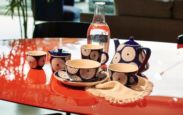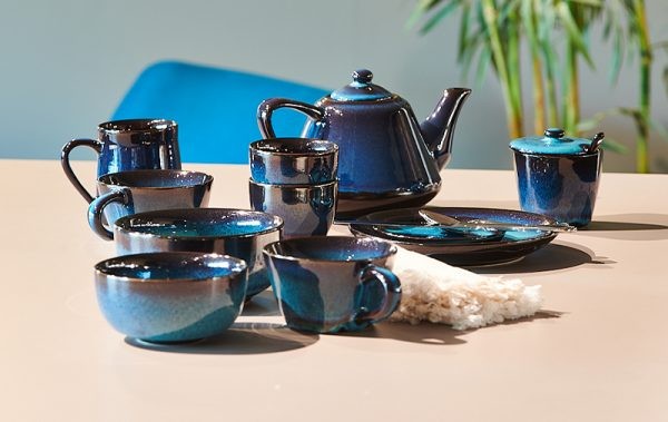 Sfumature di un’arte antica caratterizzano anche la linea Cobalto. Gli articoli in ceramica di Bat Trang in Vietnam sono rinomati in tutto il mondo e i più preziosi contengono cristalli di vetro riciclato e granelli di sabbia che si sciolgono durante il processo di cottura, creando riflessi e diverse gradazioni cromatiche.