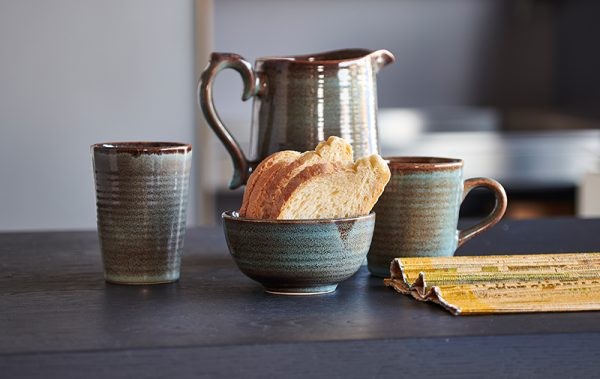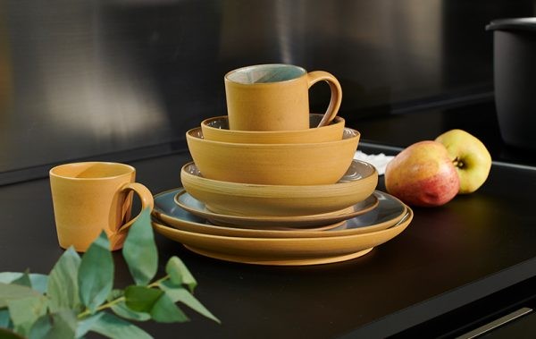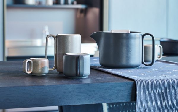 Ciotole, tazze, un grande barattolo e un’originale teiera da collezionismo compongono il servizio della linea Arena, un servizio dagli smalti pieni, bicolore e dalle forme arrotondate ed essenziali.