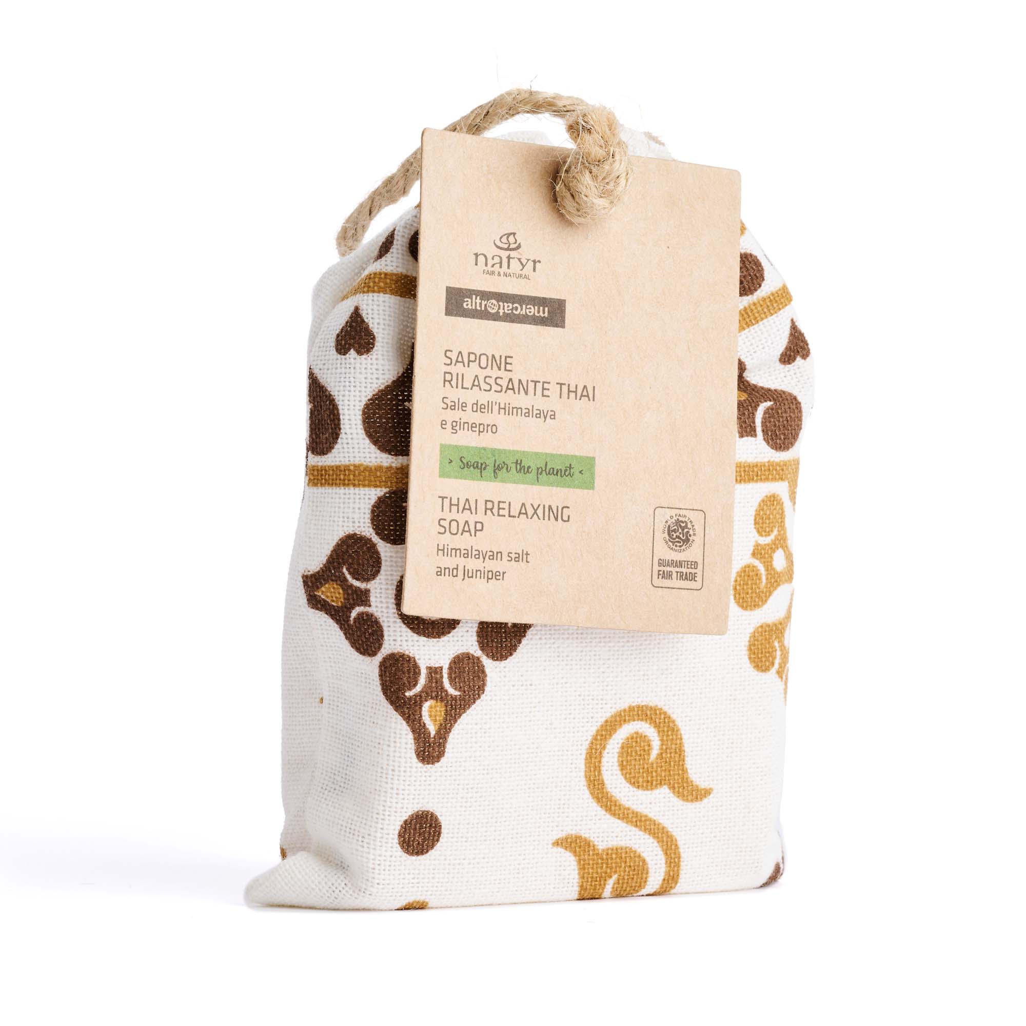 I saponi artigianali Thai Corpo & Mani Natyr sono realizzati proprio dalle mani esperte degli artigiani di Soap-n-Scent. Per la base detergente vengono usati due oli naturali pregiati e tipici delle tradizioni di benessere asiatiche: l’olio di cocco e l’olio di riso, che donano al sapone un texture molto morbida e piacevole. Per rendere le formule più efficaci i saponi vengono arricchiti con estratti naturali purificanti, come quelli di tè verde e karkadè. L’effetto rilassante è ottenuto grazie alle sinergie di oli essenziali scelte in base alle indicazioni dell’Aromaterapia, mentre gli oli essenziali hanno capacità antibatteriche dimostrate. I saponi vengono ottenuti mediante un processo artigianale sia nella saponificazione che nel confezionamento, eseguite con attenzione nel laboratorio dell’organizzazione. La particolare Linea Paper Bag propone saponi artigianali confezionati a mano in un sacchettino porta sapone in carta riciclata e riutilizzabile.