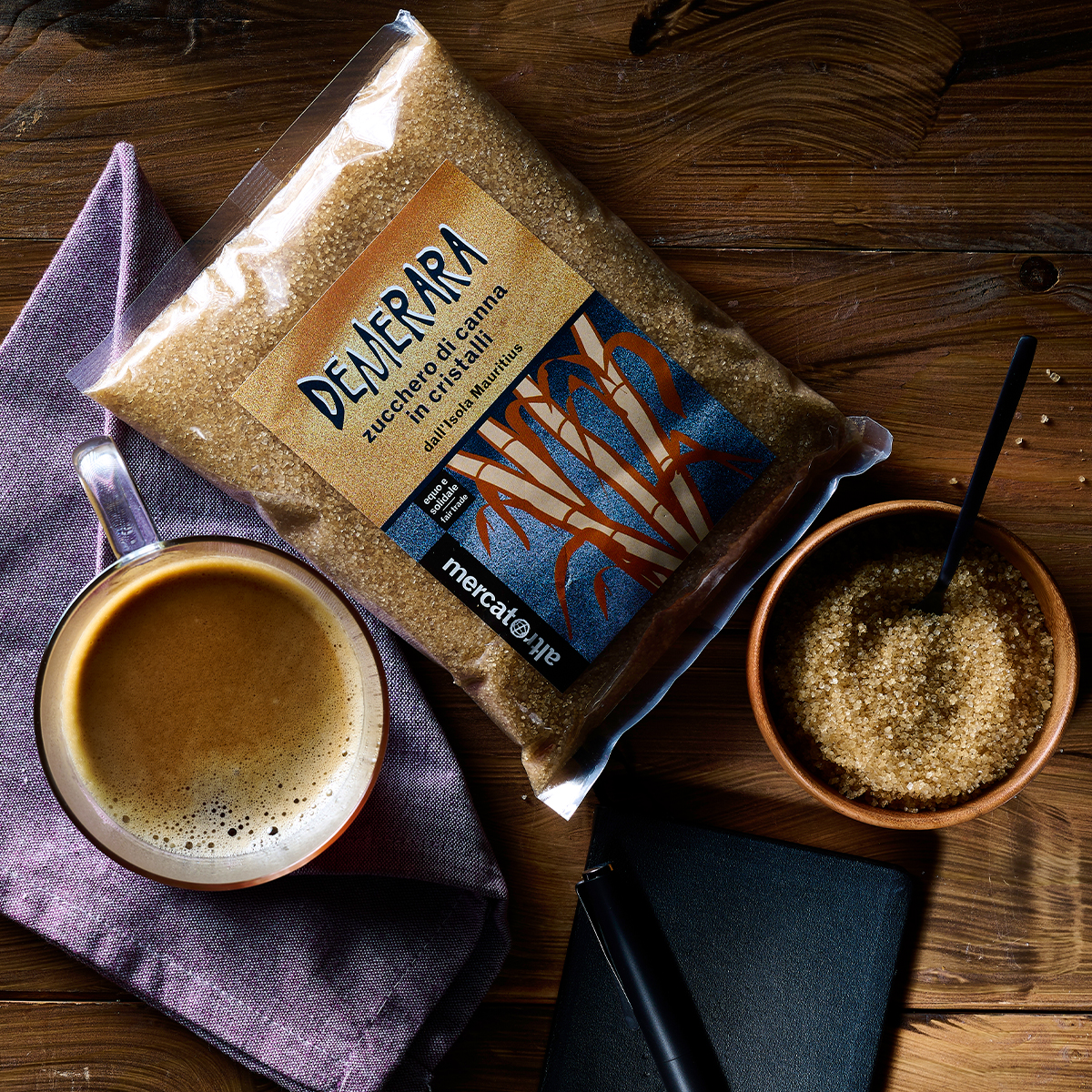 Il Demerara è uno zucchero grezzo di canna che proviene da MSS nell’Isola di Mauritius. Uno zucchero dai cristalli grossi, dal colore brillante, gradevole e fragrante, caratterizzato da note caramellate.