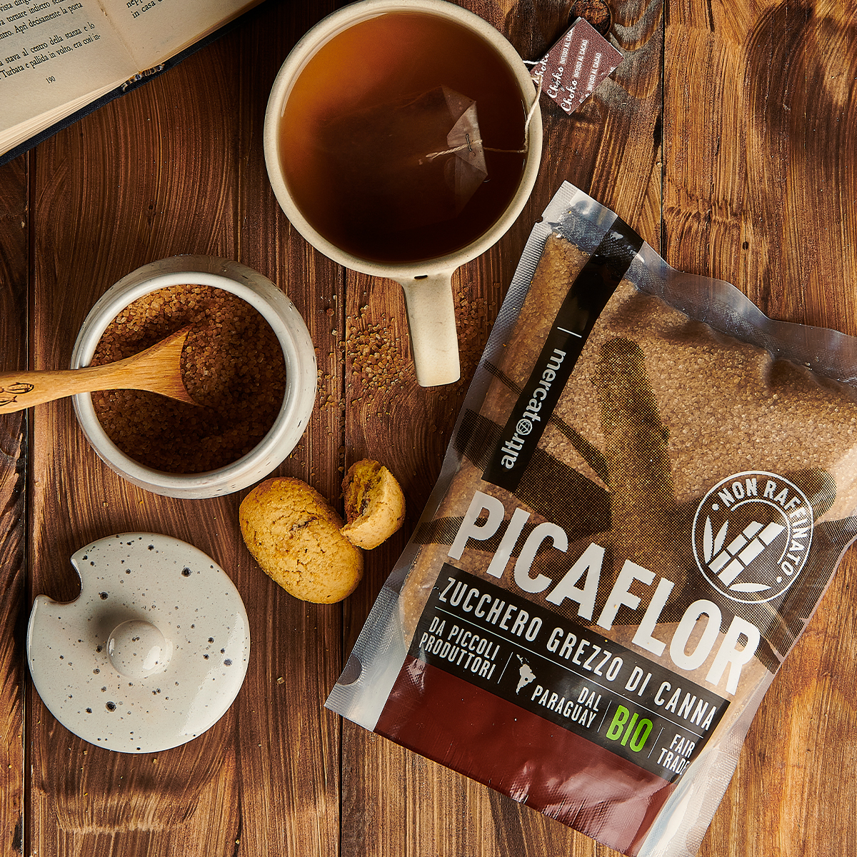 Arriva dall’isola di Panay, nelle Filippine, questo zucchero di canna integrale e biologico. Viene realizzato dai contadini di PFTC seguendo un tradizionale metodo artigianale di evaporazione, che lo rende unico per qualità e aroma. È caratterizzato da un piacevole sentore di liquirizia, non sbiancato chimicamente e grazie alla presenza di melassa preserva tutte le qualità nutritive.