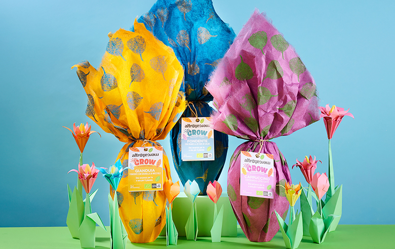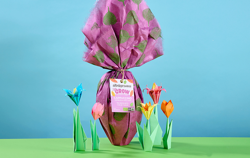 Infine, all’interno dell’uovo di cioccolato classico o al cioccolato bianco le sorprese sono piccoli pensierini per Pasqua, creati dalle artigiane di Ecco Exe in Perù o di Prokritee in Bangladesh, realtà che offrono opportunità di lavoro a donne in difficoltà. Per le uova GROW e nella novità Vegan, la sorpresa è una divertente calamita.
